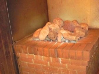 Важно! За камъни в печката те вземат гранит, натрошени скали и камъчета. Кремъците не могат да се използват, те се напукват от температурни промени и могат да причинят сериозни наранявания от летящи фрагменти.