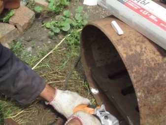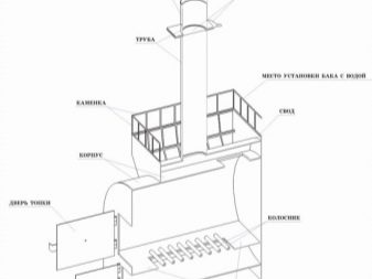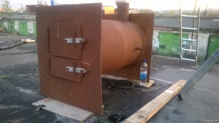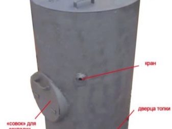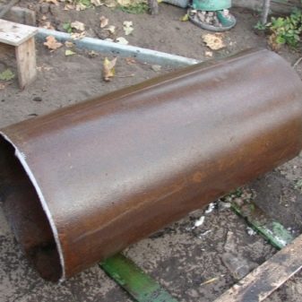 Стоманена тръба с диаметър 50 см и стена с дебелина 1 см се нарязва на две части: първата – 60 см, втората – 90 см. Последният сегмент ще се използва като печка, както и резервоар за нагряване на вода ще бъде получен от фрагмент от шестдесет сантиметра.