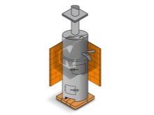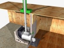 Стоманен квадрат на платформа със страна 30 cm е заварен към комина, на ниво 5 cm над ръба на резервоара за вода, за да се монтира тухлена тръба. Извежда се вертикално през тавана и таваните на покрива. В тухлена тръба е монтиран вентил.
