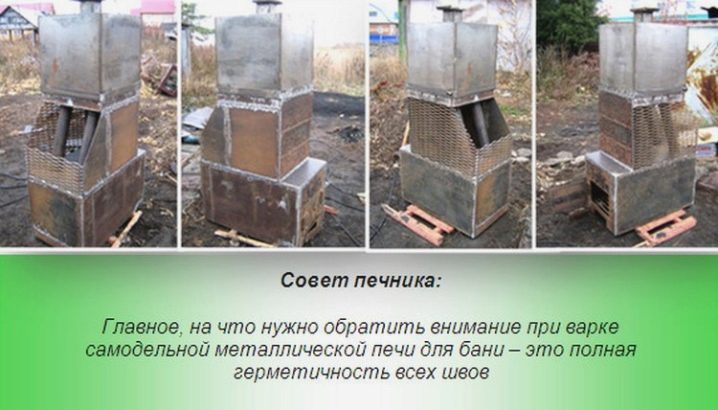 Що се отнася до метални пещи, те могат да бъдат заварени с помощта на метални листове и дебелостенни тръби с големи диаметри, както и използвани цилиндри и бъчви, а понякога се използва и такъв екзотичен вид материал като джанти..