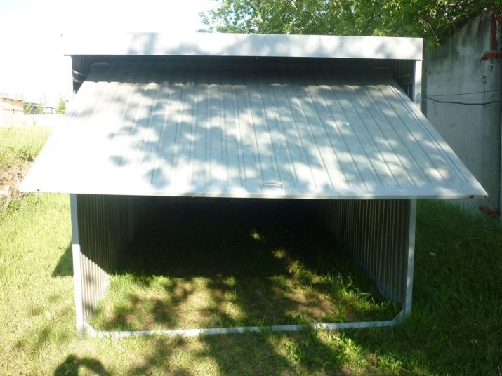 Цената на гараж също ще варира значително в зависимост от материала на производство. Представен е от обикновени метални листове или специална полимерна пластмаса – лека и гъвкава, но в същото време много издръжлива суровина. Вратите на „корпуса“ могат да се отварят по различни начини: както обикновено крилата или със система за ролетни щори, движеща се нагоре. Последният вариант е по -удобен с малка площ от сайта. Повдигащият механизъм на портата се предлага с ръчна или автоматична система за отваряне, която също значително отличава гаражите по отношение на крайната цена..