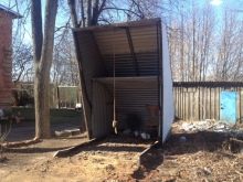 - В големите градове основната опасност при неразрешено изграждане на гараж в двора на жилищна сграда е евакуацията на цялата сграда, ако общината забележи такава сграда. Официално гаражът на черупките не е специално класифициран като незаконно построен нестационарен обект, но все пак не може да се нарече напълно мобилен сенник за кола. Бъдете готови за факта, че такава структура по време на вашето отсъствие може да бъде разрушена и изпратена заедно с колата до специален паркинг – склад.