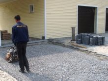 - Преди да инсталирате гаража, се подготвя сайт чрез изравняване на повърхността. Добре е, ако готовото място вече е покрито с бетон или друга основа, но ако отсъства, тогава не е страшно. Изкопаната земя трябва да бъде уплътнена и след това покрита със слой от едрозърнести развалини или камъчета. Ако желаете, след завършване на монтажа на цялата конструкция, можете допълнително да поставите покритие върху пода като дървена или метална настилка.