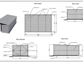 - На предварителния чертеж маркирайте дължината и височината на всяка стена, като вземете предвид размерите на колата. Съгласно стандарта трябва да има 7 елемента: неразделна задна стена, два гъвкави листа от всяка страна, за да придадат на стената закръглена форма, и два листа за портата. Ако последните се вдигнат автоматично, тогава ще има един елемент по -малко. Долната част на стените е заварена към опорните греди, горната част се припокрива за по -добро раздалечаване.