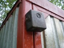 - За да защитите гаража си от крадци, трябва внимателно да изберете ключалка.. Немските производители са най -подходящи – те са по -скъпи от китайските, но са по -надеждни в продуктите. Крадците смятат „черупката“ за лесна мишена за разбиване, затова, ако е възможно, инсталирайте аларма на входната порта..