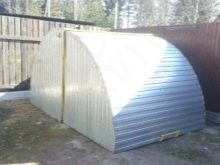 - Основното предимство на черупковия гараж е неговата ниска цена.. Общата цена на материалите за самостоятелно сглобяване няма да надвишава 25 000 рубли, което е приблизително равно на полугодишно плащане за охраняем паркинг.