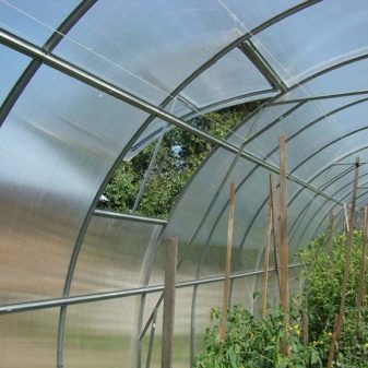 Струва си да се обърне специално внимание на избора на поликарбонат. За обикновени неотопляеми конструкции са подходящи тънки материали (до 8 мм). Това е бюджетен поликарбонат с ниско тегло. Въпреки това, за изграждането на целогодишна оранжерия, това няма да работи. В този случай трябва да се даде предпочитание на поликарбонатни листове с дебелина най -малко 10 мм. Те ще задържат топлината добре, както и ще издържат натоварвания от вятър и сняг..