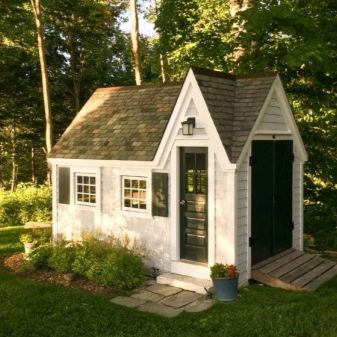 - Също толкова интересен вариант. Плевнята е малка и просторна. Вътрешната му структура ви позволява да съхранявате не само градински инструменти, но и велосипеди и детски уличен транспорт.