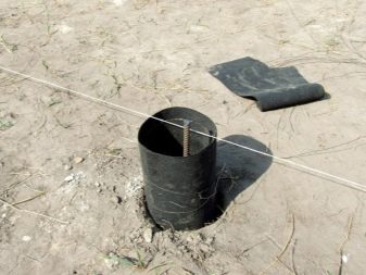 Формата на стълбовете няма значение – можете да изберете този, който е по -лесен за постигане. Тръбите се навиват от покривен материал и се потапят в вдлъбнатини, предварително пробити с градинска бормашина и частично запълнени с чакъл. След монтирането на армиращата клетка бетонът се излива според нивото и по -нататъшната работа се извършва само след като набере сила.
