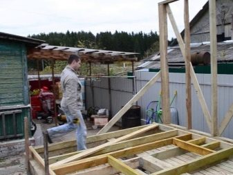 При изграждането на покрив се взема предвид необходимостта от оборудване на надвеси. Ако дължината на конструкцията е 3 м, ребрата по дължина (като се вземе предвид скосяването) достигат 3,84 м. Най -критичните части трябва да бъдат закрепени с пирони от двете страни. За да направят гредите по -надеждни, те все още са фиксирани с метални ъгли..