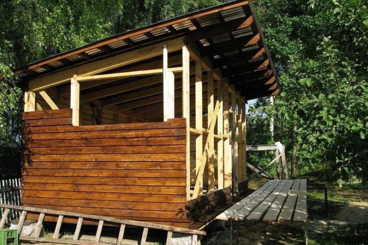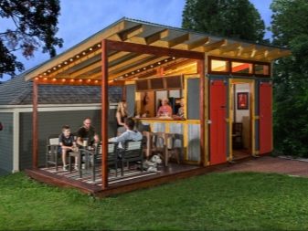 Вътре можете да организирате и летен душ.. Комбинацията от двете сгради ще освободи доста усилия, пари, време и труд за изграждането и подреждането на основната къща, за подобряване на територията. Лесно е да поставите барбекю под покрива; дори най -силният дъжд няма да го потуши.