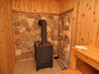 За да се осигури по -привлекателен външен вид на конструкцията и да се допринесе за увеличаване на коефициента на топлопреминаване на пещта, тя може да бъде допълнително облицована с камък. Тази техника също ще увеличи нивото на защита на конструкцията от влиянието на външни фактори, по -специално от проникване на влага в тялото на устройството..