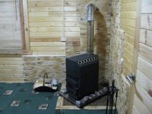 Но преди да инсталирате самата фурна, трябва да подготвите място за нейната инсталация. Дори в случай, че няма нужда от допълнително укрепване на основата, все пак трябва да се погрижите за мястото на инсталиране. За това се използват топлоизолация и топлоизолация. Можете да използвате метални листове или глинен тухлен слой като ограда от дървени стени от работеща фурна. След това можете да продължите към инсталирането на самата печка.