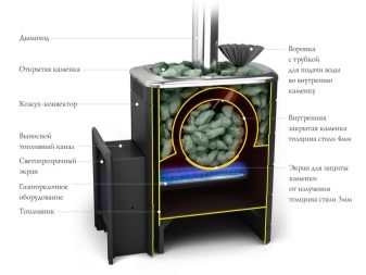 - голям обем на нагревателя, който позволява да се инсталира както в големи, така и в малки парни бани;