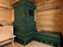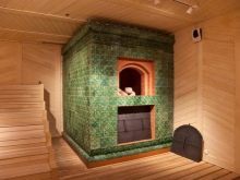 Много внимание трябва да се обърне на дизайна на печката във ваната. В края на краищата това е основният компонент на всяка парна баня. За проектирането на печки за сауни могат да се използват различни материали, сред които често се използват тухли, плочки, естествени или изкуствени камъни, гипс, плочки и стоманени корпуси.. В процеса на облицоване на печката с плочки могат да се разграничат някои от нейните разновидности: