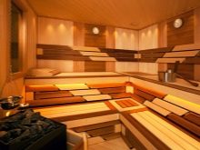 Едно от основните правила при декорирането на баня е, че не трябва да използвате покритие от иглолистна дървесина в парната баня.. Такова дърво има голямо количество смоли, които ще започнат да се отделят при високи температури. И това покритие се нагрява много по -силно от другите скали. Но е препоръчително да се използват иглолистни дървета в помещения, съседни на парната баня. Те са идеални за съблекални и перални, които не стават толкова горещи като парна баня. В съседни помещения иглолистните дървета ще излъчват много приятен аромат и ще имат здравословен ефект върху тялото. Също така материали като гипсокартон, PVC или влагоустойчиви плочи са подходящи за съседни помещения..