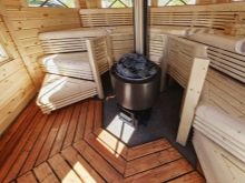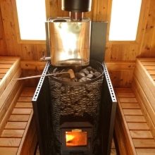Също така, за да зададете желания режим, имате нужда от парогенератор във фурната. Някои нагреватели са оборудвани с парогенератор, който осигурява автоматичен поток на вода в печката, където тя се изпарява и парата се разпределя равномерно в парната баня. Това е много удобна функция, но не всички печки за сауни я имат..