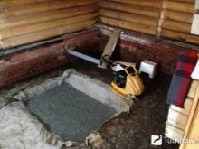 - Бетонът за основата се приготвя в следните пропорции – за това една част цимент се смесва с 4 части натрошен камък и се добавят три части пясък. Трябва да се добави вода, така че бетонът да не се разтече и да запази пластичността си. След смесване на разтвора, той трябва незабавно да се излее в ямата и да се уплътни. Повърхността на основата се изравнява с правило и след това се покрива с полиетиленов филм. След такива процедури трябва да изчакате, докато разтворът се втвърди и се втвърди..