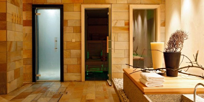 За изграждането на бани и тяхното вътрешно подреждане винаги се е използвало дърво, понякога имаше сгради, облицовани с тухли отвън. Днес тази тенденция продължава и непрекъснато се работи за подобряване на качеството на основните суровини. Въпреки това, освен дърво, сауните и баните са украсени с не по -малко ефектни материали – това се отнася за стъклени изделия, по -специално врати.