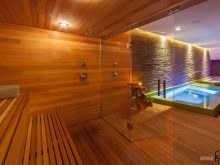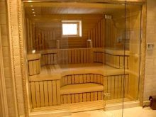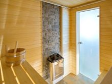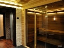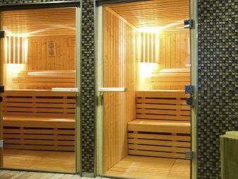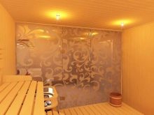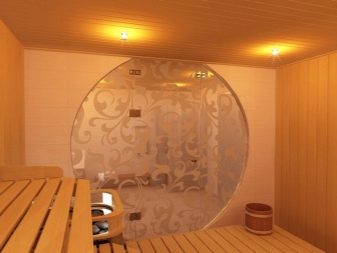 - модели на стъклени врати имат отлична пропускливост на светлина в стаята, за разлика от глухите дървени изделия. Как можете да спестите от електричество, което е необходимо за осветяване на парната баня.