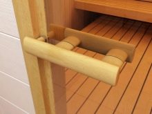 Що се отнася до детайл като ключалка, важно е да се обърне внимание на нивото на фиксиране., които тя предоставя. Евтините топкови части най -често се провалят, в резултат на което конструкцията се блокира. Най -правилният вариант за парна баня е магнитна ключалка.