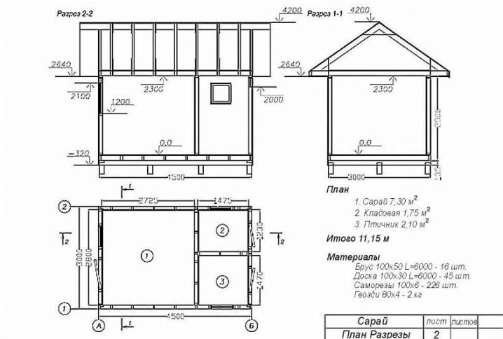 Домашен майстор може самостоятелно да се развива проект бъдещо строителство и използвайте готови схеми. Помислете за няколко примера за подробни планове за стопански постройки с посочване на площта и всички необходими параметри на размерите.