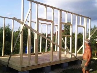 След това трябва да отидете до монтажа на рамковата основа на бъдещата конструкция. Ролята на носещата конструкция на стената ще се играе от греда от същия участък, който е в сбруята. Стелажите ще трябва да бъдат инсталирани на разстояние не повече от 1,5 м един от друг. Мястото, където ще се монтират вратите и прозорците, е предварително подсилено с вертикална греда, както и с хоризонтална преграда, съответстваща на размерите на кутията. Гредите с горни напречни елементи трябва да бъдат свързани чрез метални ъглови плочи.
