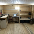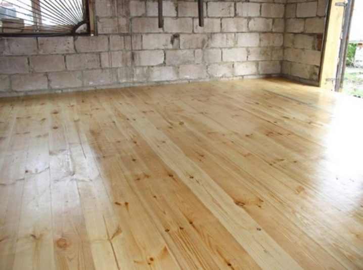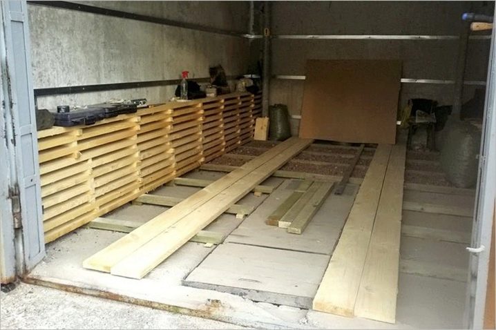 Бюджетният дървен под запазва естествената миризма на дърво. Както можете да видите, свързването на дървени панели е почти безпроблемно. Дъските се поставят успоредно една на друга. Геометрията на помещението не се нарушава и поради това разположение на трупите визуално се удължава. Тази опция е идеална за малък гараж..