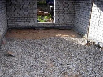 Първата стъпка при монтажа на хидроизолация е запълването на чакълената възглавница. Малките заоблени частици действат като дренаж, следователно те осигуряват оттичане на водата от повърхността. Влагата няма да застоява и няма да изгние пода. Дебелината на възглавницата трябва да бъде до 100 милиметра. След полагане върху повърхността е необходимо многократно да ходите с валяк, за да уплътните слоя..