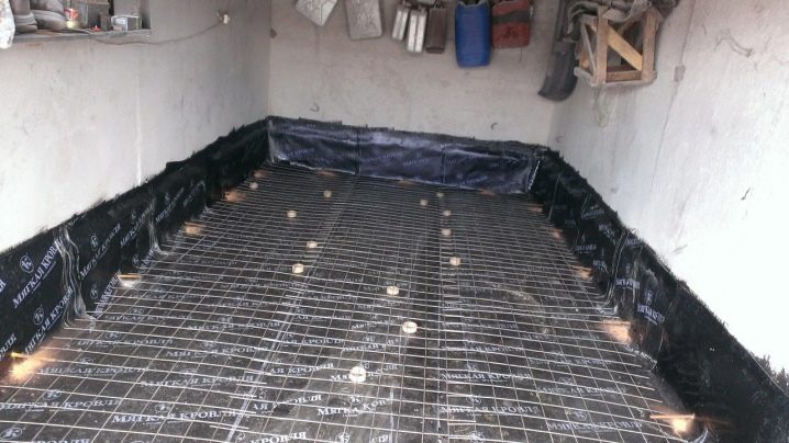 Върху хидроизолацията се монтира армировъчна мрежа. Подсилването ще помогне да се осигури необходимата здравина и твърдост на бъдещата повърхност. След това можете да започнете да изливате бетонната замазка. По време на монтажа повърхността трябва да бъде изравнена със специални шпатули – това ще улесни шлифоването след изсъхване на цимента.