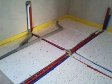- Стиропор. Този вид изолация се полага върху бетонна плоча и служи като добра основа за изливане на замазката. Плътността на такъв материал трябва да бъде най-малко s-25, а дебелината на плочата е по-добре да отнеме около 10 сантиметра. Не се препоръчва да се оставят празнини между изолационните панели..