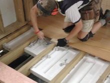 Важно е да знаете, че дървената настилка се полага върху основата. Положената повърхност трябва да бъде допълнително грундирана и боядисана. Преди монтажа всеки панел трябва да се изсуши и обработи с антисептик. Тези мерки ще увеличат експлоатационния живот на дървото и ще го предпазят от вредни химически влияния..