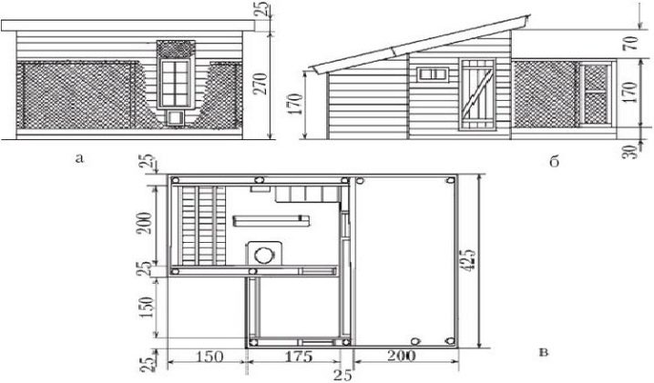 Чертежът на бъдещата сграда трябва да бъде много точен.. Диаграмата трябва да съдържа всички необходими маркировки, точки за местоположението на кацалки и други компоненти. 1 пиле обикновено представлява една четвърт от пространството за костур. Въз основа на това изчисление можете да изчислите дължината на бъдещото място за птици. Дебелината на костура в диаметър трябва да бъде най-малко 4-6 cm.