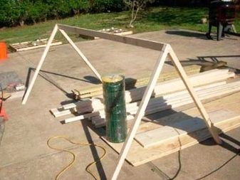 - За малък кокошарник можете да построите само 3 стълба с решетка за дървен материал отгоре.