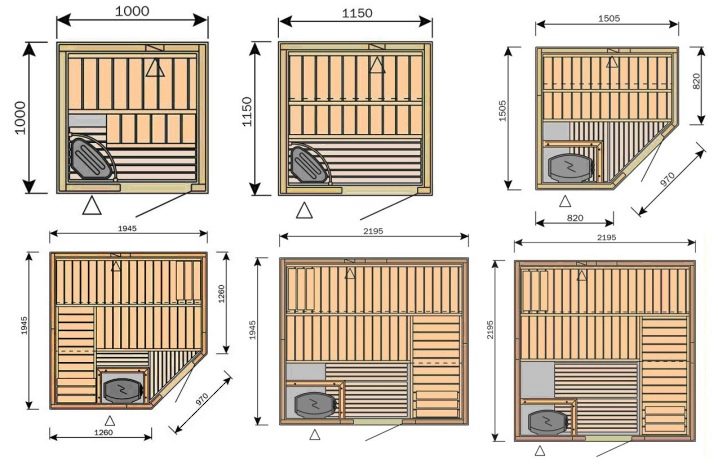 Конструкцията на всеки тип трябва да се разглежда отделно, тъй като конструкцията на всеки има много различия и нюанси. Размерът и конфигурацията могат да варират в зависимост от помещението, отделено за сауната, а редът на строителство и вътрешното подреждане, като правило, не се различават много..