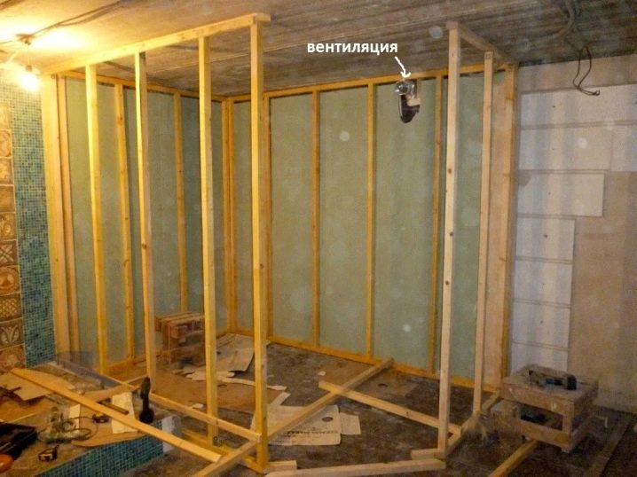 За дървена рамка се препоръчва да се използва квадратна греда с напречно сечение 5 cm. Броят на бурсите и хоризонталните ламели се избира в зависимост от проекта или размера на сауната. Стъпката между опорните греди се избира въз основа на изчислението на ширината на изолационния материал.
