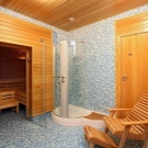 Следващата стъпка е да обшиете интериора на сауната с дъска, изработена от избрания дървен материал. Струва си да си спомним за вентилацията, както и за провеждане на захранващи проводници за инсталиране на печката и осветление в сауната.