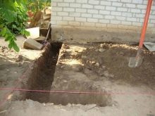 - започнете с изкопаване на изкоп от 30 до 40 чувства дълбоко по периметъра на бъдещата беседка;