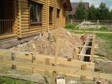 - трябва да изкопаете дупки в ъглите и периметъра на бъдещата сграда, както и на места, където ще бъдат положени подови греди;