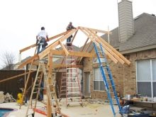 - Подготвените греди трябва да се монтират върху щифтовете, да се провери тяхната вертикалност с ниво на сградата и да се обезопасят с временни диагонали.