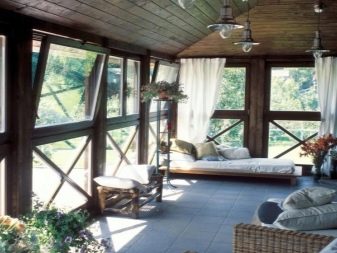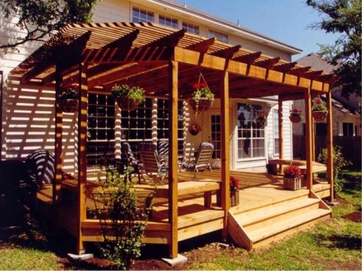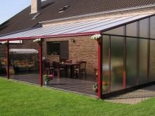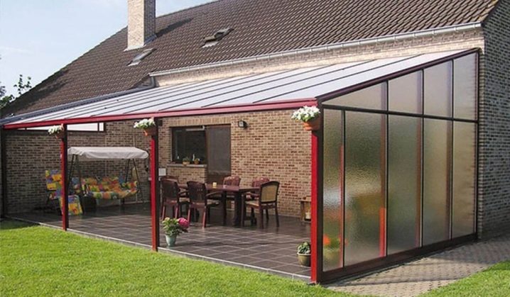 Носещата стена на сградата ще бъде една от стените на къщата, което значително ще спести пари. Беседката ще бъде удобна за използване, ако я прикрепите към стени, които имат отвори за прозорци или врати. Оптимално е да се изгради беседка в близост до градински дървета. Разширението е компактно и не заема много място и тъй като една от стените му е стената на къщата, то ще бъде надеждно защитено от вятъра. Малка структура изглежда оригинална, често се стремят да я украсят с дърворезби или комбинация от различни съвременни материали, но най -добрата й декорация беше и остава стайни растения, радващи окото със свежа зеленина.