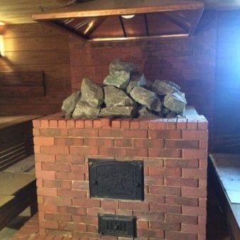 - Напълнете печката с камъни. Забранено е използването на гранит или камъни, съдържащи слюда, за тези цели. Талкохлоритът е перфектен.