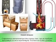Поради това списъкът беше намален само до два елемента: тухла и метал. Каменните печки бяха и остават най -предпочитаният вариант за руските бани, но металът е много по -евтин и по -лесен за работа. Това доведе до факта, че металните конструкции постепенно заместват тухлите. За самостоятелно производство също е по-добре да предпочетете метален възел, тъй като е по-лесно да го направите сами, отколкото изложи тухлен класически дизайн.
