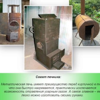 Устройството на метална пещ не създава такива трудности като тухлена, така че е логично да започнете описанието с по -проста опция.