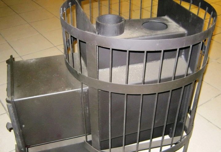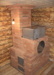 По -лесно е да се построи такава печка., тъй като не е нужно да работите върху направата на капака, обаче, за баня, тази опция не е най -добрата поради сухата гореща пара. Във ваната мократа пара е добре дошла..