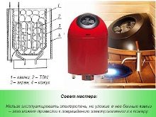По отношение на устройството на парогенератора, това решение ви позволява да напълните помещението с тежка мокра пара, както в хамам, и без да прибягвате до пълна промяна на печката. Най-интересното решение е да инсталирате мини парогенератор в допълнение към домашна печка за сауна, което ще спести място, като същевременно се справя със задачата си не по-лошо.