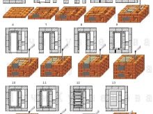 Обърнете внимание на следната диаграма. Той показва реда на тухлите. Следвайте го, за да изградите фурната правилно. Също така, тухла може да се използва за покриване на метална конструкция. Това дава ефект, че във вашата баня е монтирана тухлена печка, а не метална..