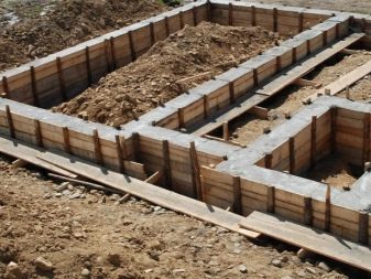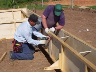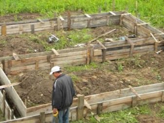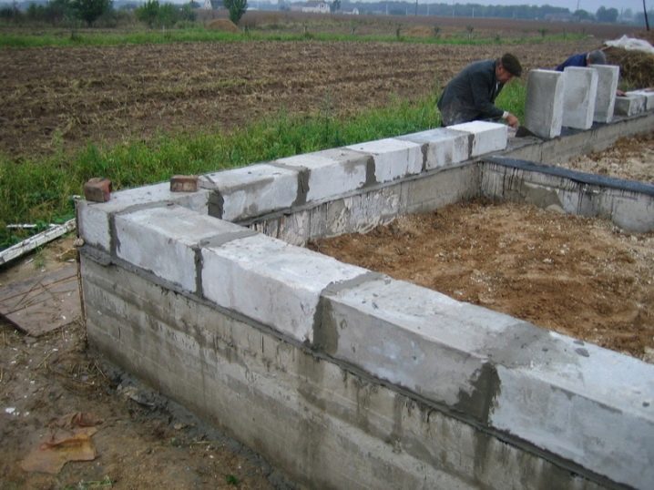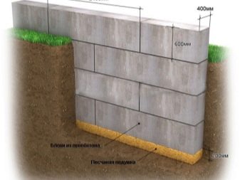 Първият етап ще бъдат земни работи. Най-често се препоръчва запълването на лентата на ниво 40-50 см. Като правило тази цифра не включва така наречената възглавница, чиято дебелина трябва да бъде най-малко 20 см. Тоест дълбочината на изкопа за основата трябва да бъде 65-70 см. Ширината, ако желаете, може да бъде избрана произволно. Преди да се извърши директно изливане на разтвора, е необходимо да се направи кофражът. По този въпрос е най -добре да се съсредоточите върху размерите на закупените блокове, а също така да знаете, че ширината на основната лента трябва да бъде малко по -голяма от тази на камъните. Освен това трябва да има свободно пространство, за да можете да укрепите панелите на рамката с дистанционери..