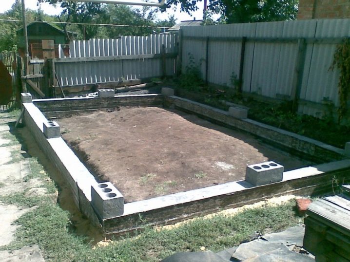 Ако почвата не е твърде гъста, тогава площта на опората на конструкцията върху почвата трябва да бъде изкуствено увеличена. Това може да стане чрез увеличаване на ширината на изкопа и предварително инсталирана замазка, върху която след това ще се постави кофражът.. Вярно е, че с тази опция ще трябва да увеличите дълбочината на основата на основата с размера на дебелината на пълнежа..