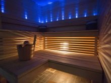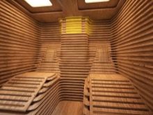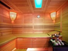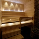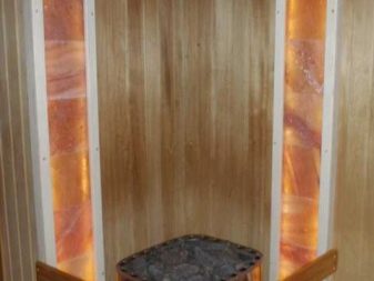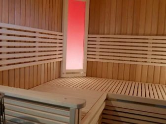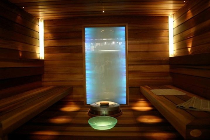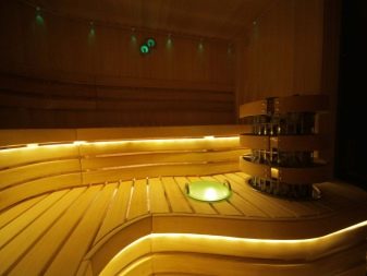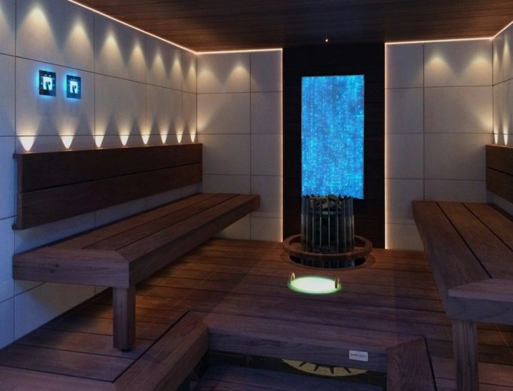 Друг важен критерий за избор е цветът на осветлението.. Най -благоприятната ще бъде обичайната жълта светлина.. Той е удобен за очите, създава атмосфера на комфорт и мир. Бялото е по -студено, по -обезпокоително. Можете също да изберете цветно осветление, но не трябва да го използвате като основно.. Ярките нюанси могат да бъдат досадни и разсейващи, когато релаксирате в парната баня..